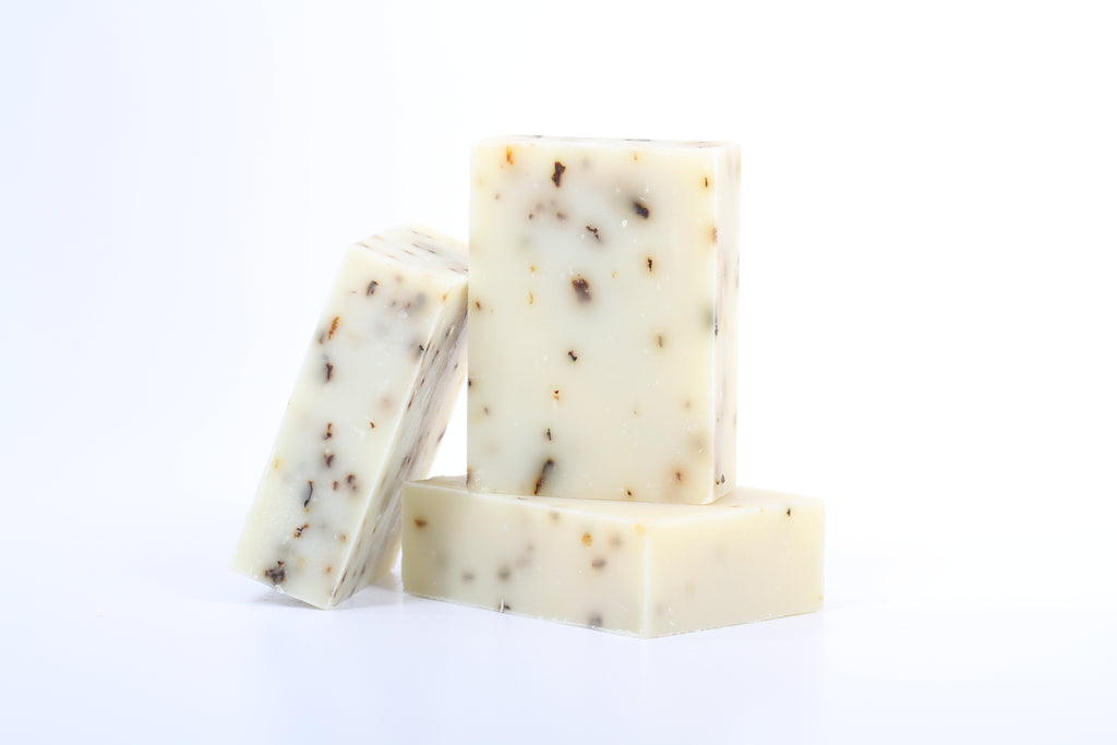 Peppermint essential oil and crushed peppermint leaves accent this naturally eye-opening soap. Intense, rich natural peppermint aroma. Peppermint essential oil is known for its cooling, analgesic, anesthetic, decongestant, emmenagogue, insecticide and stimulating properties.